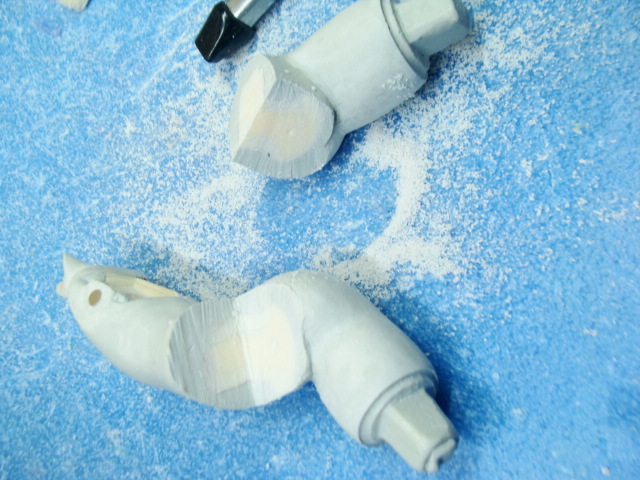 首も同様に削って細くしています。